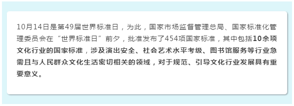 據悉,在此次出台的(de)10餘項文化行業的(de)國家标準中,絕大部分以文化發展實際需求為(wèi)導向,側重于解決文化領域重要且迫切的(de)現實問題。