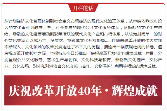 轉載自(zì)@中國文化報原标題:現代公共文化服務體系建設努力探索保障人民群衆基本文化權益的(de)特色之路改革開放以來,尤其是黨的(de)十八大以來,在黨中央、國務院的(de)高(gāo)度重視(shì)下,我國公共文化服務體系建設呈現出整體推進、重點突破、全面提升的(de)良好發展态勢,積累了許多滿足人民群衆基本文化需求的(de)特色經驗,取得了顯著成就。公共文化服務體系是改革開放以來文化建設理(lǐ)論的(de)重要創新,深刻反映了我國文化體制改革理(lǐ)論和(hé)實踐的(de)發展變遷曆程,……