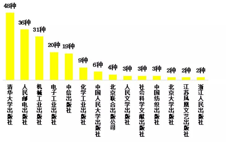 館配覆蓋率TOP200書目中,上榜品種數在2種及以上的(de)出版社共14家,其中清華大學(xué)出版社、人民郵電出版社和(hé)機械工業出版社上榜品種數均在30種以上,優勢明顯。TOP200圖書中,2018年(nián)版圖書共164種,品種占比為(wèi)82%;工業技術(T類)圖書共142種,品種占比為(wèi)71%。