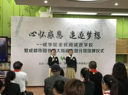 2017年(nián)4月,成都市熊貓路小學(xué)向全球發出“征集令”:為(wèi)了讓世界各國的(de)“大熊貓”回家,構築熊貓文化家園,當時讀三年(nián)級的(de)熊貓路小學(xué)小學(xué)生發出在學(xué)校創建全球首個“大熊貓主題圖書館”的(de)倡議,得到了成華區教育局和(hé)相鄰的(de)成都大熊貓繁育研究基地(dì)的(de)支持。