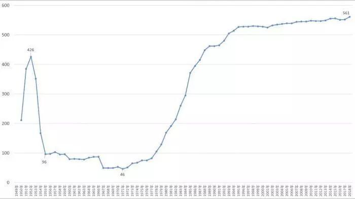 新中國成立70年(nián)來,我國總人口由1949年(nián)的(de)5.4億人發展到2018年(nián)的(de)近14億人,年(nián)均增長(cháng)率約為(wèi)1.4%。龐大的(de)人口總量為(wèi)中國經濟的(de)騰飛(fēi)提供了寶貴的(de)人力資源,為(wèi)中國特色社會主義現代化建設奠定了堅實的(de)人才基礎。結合70年(nián)來我國人口增長(cháng)情況看,年(nián)人均圖書消費量整體呈現逐步上升趨勢,2018年(nián)年(nián)人均冊數突破7本,人均7.17冊,達到曆史最高(gāo)水平。特别是2006年(nián)《關于深化文化體制改革的(de)若幹意見》出台後,出版企業轉企改制深度推進,市場供給能力得到加大釋放,圖書市場可(kě)供選擇品種空前豐富,人均圖書消費量呈現出連續上升趨勢。(見圖7)出版物作為(wèi)知識普及的(de)載體,對于普及科學(xué)、開啓民智、促進技術、提高(gāo)全民族文化素養作出了難以估量的(de)貢獻,培養了一(yī)大批适應時代發展的(de)高(gāo)素質人才,極大地(dì)推動了近年(nián)來中國經濟科技的(de)快速發展。
