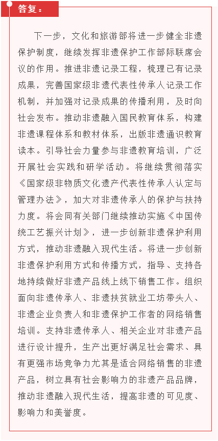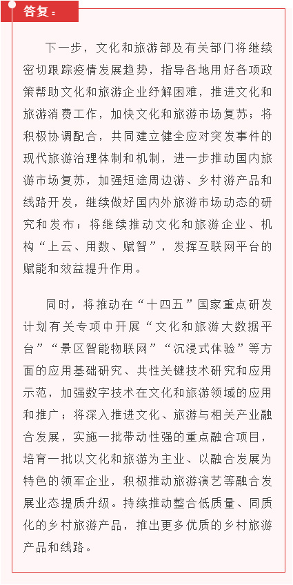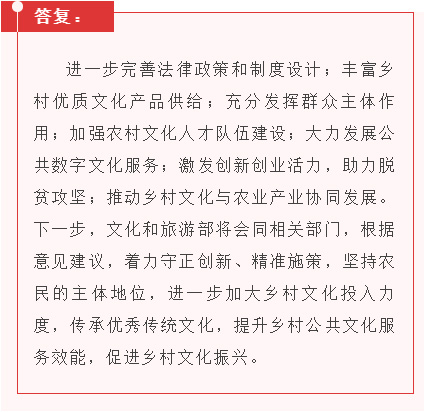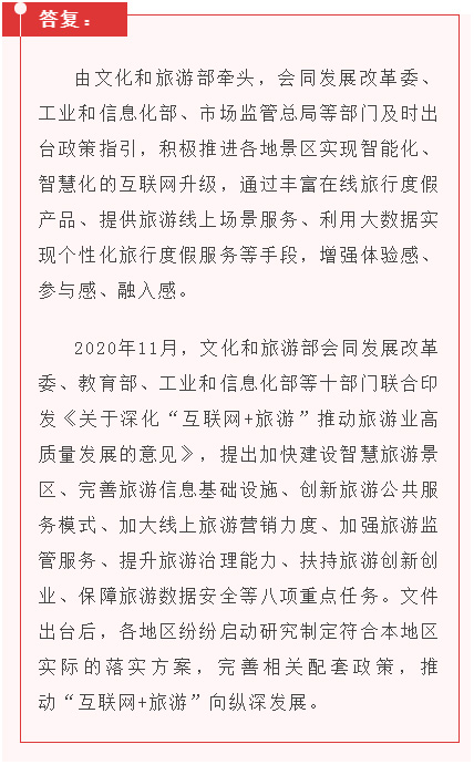 《文化和(hé)旅遊部建議提案辦理(lǐ)答複工作“精準高(gāo)效”回應社會關切 彙聚民心民智民意》