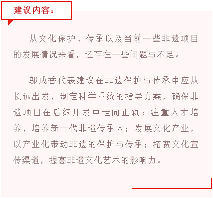 邬成香代表《關于加強非物質文化遺産的(de)傳承與保護的(de)建議》