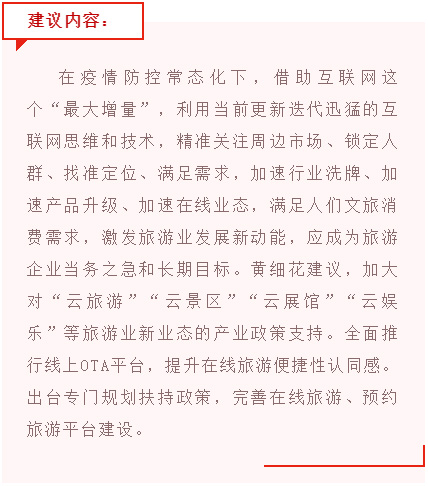 黃細花代表《關于推進“互聯網+旅遊”助推旅遊産業高(gāo)質量發展的(de)建議》