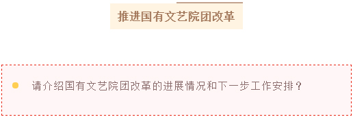 此後,中共中央辦公廳、國務院辦公廳印發了國有文藝院團深化改革相關文件。文化和(hé)旅遊部把貫徹落實中央決策部署、推動國有文藝院團深化改革加快發展作為(wèi)重要政治任務,加強組織領導,召開專題座談會,就推動中央部署改革任務落實落地(dì)作出全面安排。各地(dì)認真學(xué)習領會中央精神,抓緊研究制定本地(dì)貫徹落實中央部署的(de)實施方案或具體辦法,有序推進國有文藝院團改革取得積極進展。