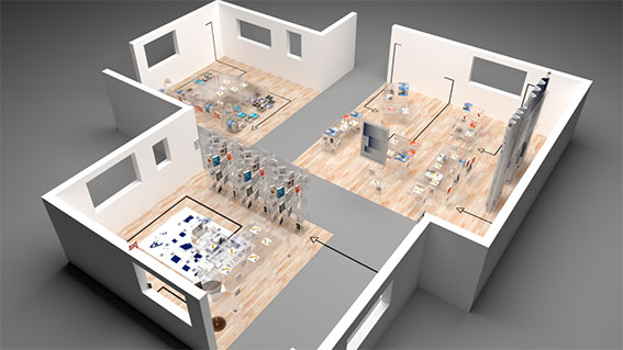 展示區域分為(wèi)“客廳”“卧室”“書房”